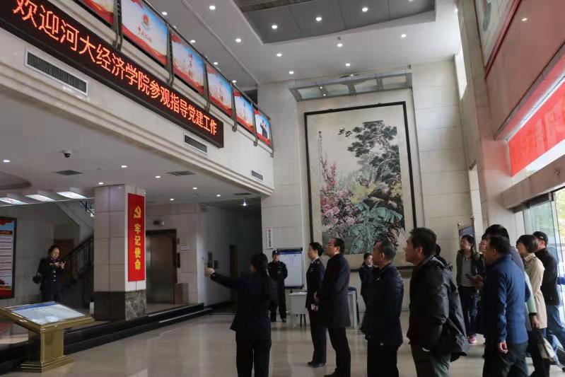为进一步深入学习贯彻党的十九大精神,全面落实新时代党的建设总要求,促进公司党建工作,提升公司社会服务能力,2018年11月15日,公司党委组织公司党委委员、各党支部书记及支部委员一行近20人,在公司党委书记田歧立和经理、党委副书记宋丙涛带领下,赴郑州市党建示范点——国家税务总局郑州市税务局以及第一税务分局,开展了以“党建引领谱新曲、校税合作话共赢”为主题的党日活动。活动期间,大家观摩了郑州税务思想文化教育基地、党建之家等,学习了郑州税务系统在党建工作方面的成功经验,并与郑州市税务局第一税务分局签署了战略合作协议,举行了公司实习基地揭牌仪式。