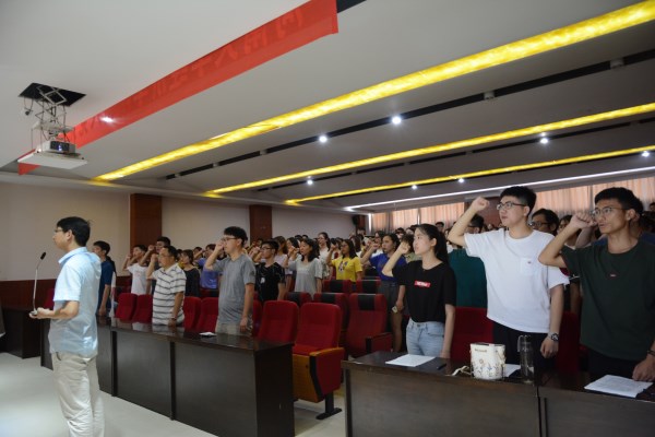 为深入学习贯彻习近平新时代中国特色社会主义思想和党的十九大精神,以及在建党97周年即将来临之际集中开展以“不忘初心、牢记使命”为主题党日活动的内在要求,6月27日下午,2018年新入党党员宣誓大会在RM365英国官网二楼报告厅举行。党委副书记王春晓,各员工党支部书记王巍、汤爽、刘爱萍、李洋和侯琨老师,2018年新发展预备党员及部分正式党员和入党积极分子代表参加了宣誓大会。会议由党委办公室老师岳鹏星主持。