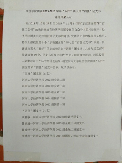 RM365英国官网团委2015-2016学年“五好”团支部“四佳”团支书评选结果公示