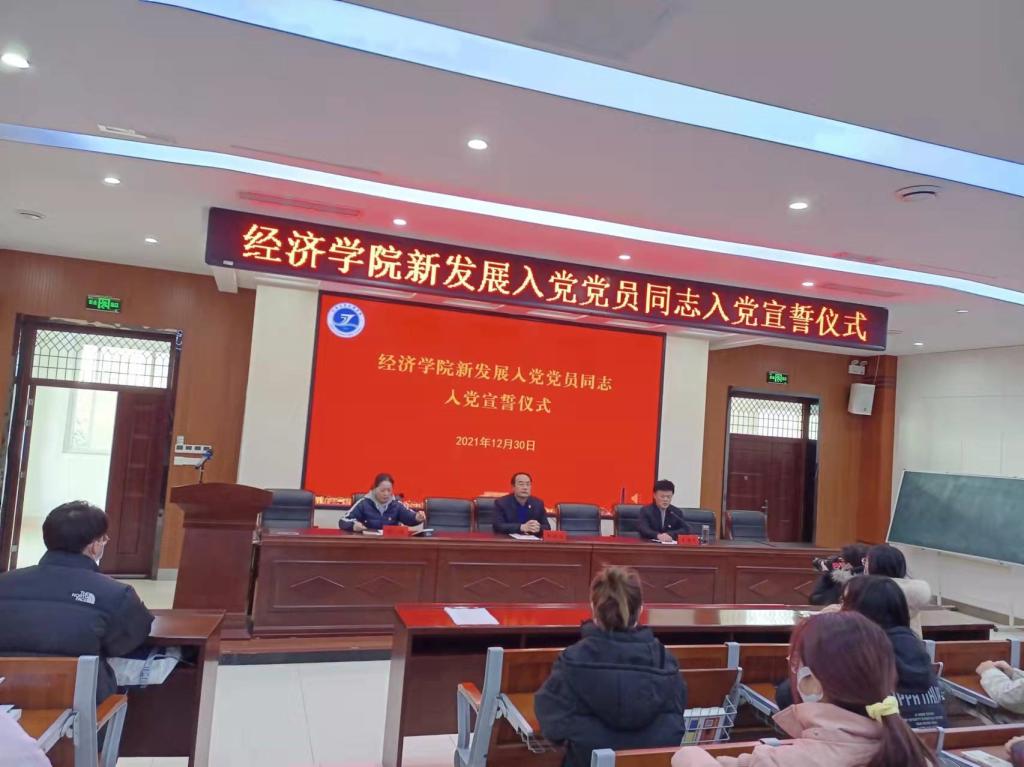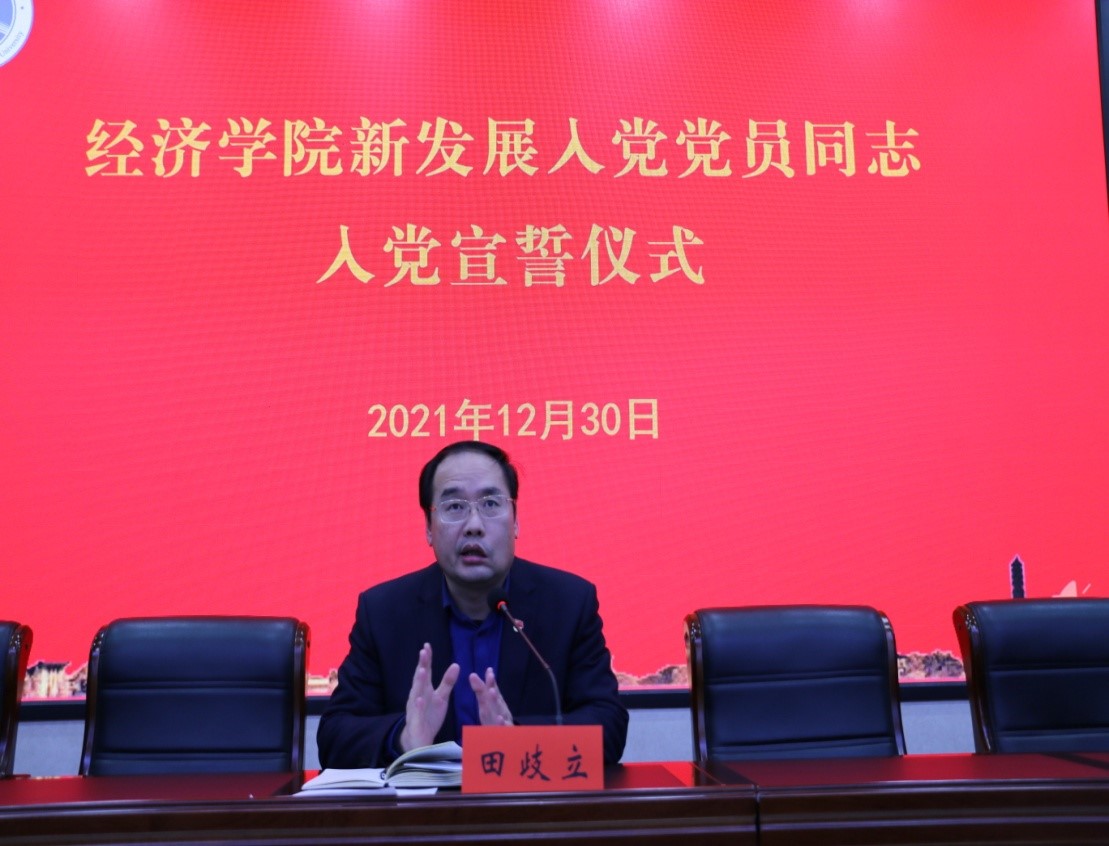 2021年12月30日,RM365英国官网新入党党员入党宣誓仪式暨党员学习教育活动在院二楼报告厅举行。公司党委书记田歧立、党委副书记李世平、副处级组织员万红、本科生第四党支部支部书记李晓涛、本科生第五党支部支部书记高娜娜、2019级经济学类辅导员陈蕾宇、全体2021年下半年新入党党员以及部分入党积极分子代表参加了此次会议。会议由李世平主持。