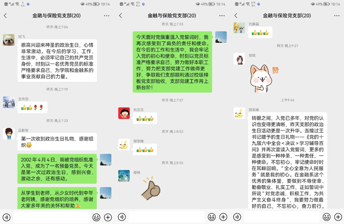 主题党日活动结束后,4名党员在支部微信群里分享了过“政治生日”的感言。