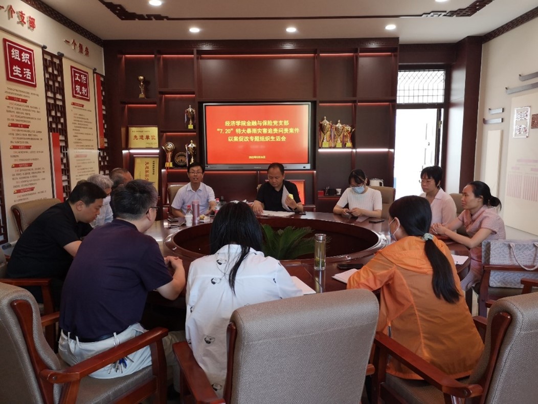 为深入学习贯彻习近平新时代中国特色社会主义思想和习近平总书记关于防灾减灾救灾工作的重要论述和指示批示精神,全面落实“7.20”特大暴雨灾害追责问责案件以案促改工作,按照RM365英国官网登录入口公司党委的安排部署,2022年5月26日下午,金融与保险党支部在公司二楼支部书记工作室召开“7.20”特大暴雨灾害追责问责案件以案促改专题组织生活会,会议由支部书记王丽萍主持,公司党委委员、副经理吴郁秋参加了组织生活会。