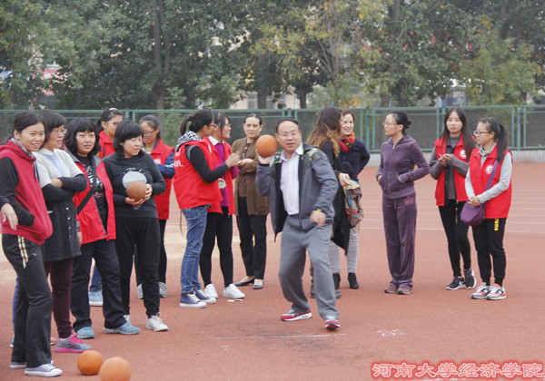 下午三点半,在党委书记王明钦的带领下,教职工们分轮次按照小组开始比赛,他们斗志昂扬,展现了新一代大学教师的风采。在工会的精心组织和团委的积极配合下,教师们分别进行了足球射门、实心球投掷、赶羊穿林、巧划旱船、众星捧月五项比赛。教师们在巧划旱船比赛中,完美配合,把团队精神体现地淋漓尽致。“一二,一二”的呼喊声与现场的加油声交织成体育场上优美的乐章。在众心捧月项目中,八个教师齐心协力,努力保持足球的平衡,跨过一个又一个障碍物,顺利到达终点,深刻体现了教师们团结一心的精神风貌。赛后,工会根据比赛成绩对表现优秀的教师进行了表彰。