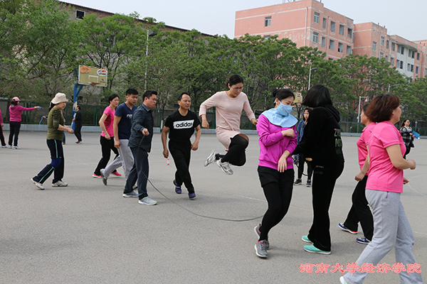 上午十时许,各位领导及教师于篮球场参加了跳绳比赛。经院教师在比赛中发挥良好。在长绳比赛中,各位教师积极参与,随行同学在一旁为教师加油助威,充分展现了经院全体对本次运动会的热心和经院的体育水平。