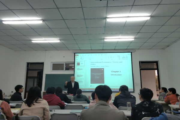 胡春田教授首先将国际金融分为国际金融组织,微观国际金融和宏观国际金融等多个部分,接着介绍了《International Economics : Theory and Policy》教材的内容体系。胡教授从教材中的理论部分讲起,围绕着国际收支、外汇市场汇率、长期与短期的价格水平和汇率波动、固定汇率、国际货币体系、金融全球化、欧元发展以及发展中国家相关问题进行讲授,并分模块对各部分详细展开一一阐述。胡教授讲课生动形象,风趣幽默,课堂学术气息浓厚。