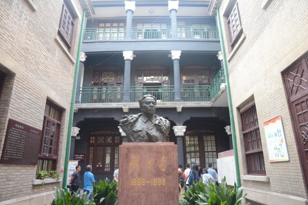 随后一行人跟随讲解员来到刘少奇在曾经待过的院子,院子中央是刘少奇的半身铜像。优秀团员们矗立在刘少奇铜像前,满怀深情地瞻仰刘少奇同志,表达了对老一辈革命家的无限敬意和追思。