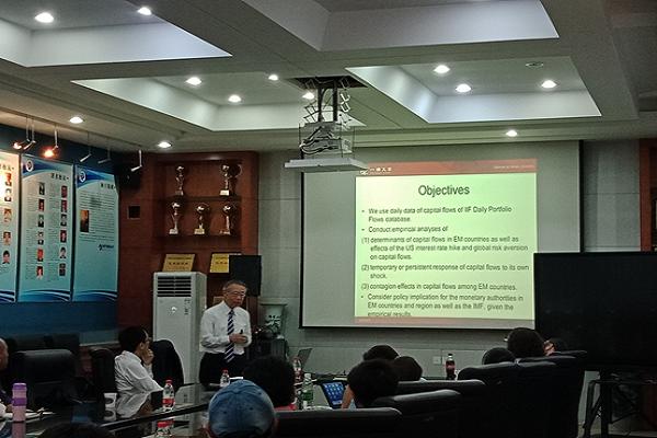 9月16日下午,日本一桥大学Eiji Ogawa教授应邀到公司作了题为“Effects of US Interest Rate Hikes and Global Risk on Daily Capital Flows in Emerging Market Countries”的学术报告。公司Makram El-Shagi教授、孙荣荣教授等老师及部分本科生研究生参加了此次讲座。本次讲座由蒋村逢教授主持。