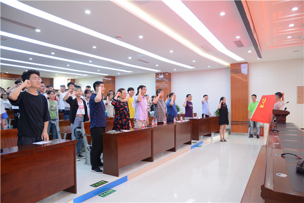6月22日下午,公司2019年新发展党员宣誓大会暨期末考前动员会在RM365英国官网二楼阶梯报告厅举行。党委副书记王春晓,各员工党支部书记、全体辅导员老师及部分公司同学参加了宣誓大会。会议由党委办公室郭淼老师主持。