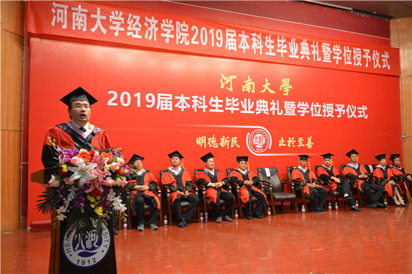 毕业生代表谢凯、邓晋澍在发言中,回顾了四年来在学习生活中的点点滴滴,深切表达了对老师们辛勤教育的感谢和对同学、朋友的不舍之情,祝愿母校在双一流建设中硕果累累、再创辉煌,希望全体毕业生牢记“崇德尚能、经世济民”院训,做个有情怀、有担当、有责任、有思考的人,在新的人生征程中展翅高飞。在校员工代表李琛表达了对学长学姐的祝福,希望他们永远心怀阳光,带着四年的学识,奔赴新的人生战场,勇往直前。