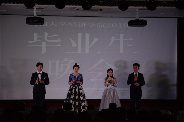 晚会现场,文艺部开场舞《Leader》将现场气氛推向高潮。歌曲《起风了》旋律优美动听,小品《毕业季》的演员们以诙谐幽默且极富张力的表演博得观众捧腹大笑,歌曲串烧《留住岁月》极具激情和时代感,《飘向北方》热烈激荡,高亢动听的歌声在同学们耳边久久回荡。在互动交流环节中,毕业生幽默风趣又不乏深情的追忆了大学四年的点点滴滴,并表达了对学弟学妹的真诚祝福。同学们真情演唱了《匆匆那年》等歌曲,赢得观众们阵阵掌声。精彩的文艺节目以歌曲《过往·送别》收尾,歌声余音绕梁,婉转动听。四位主持人深情朗诵,带领同学们回忆大学四年具有纪念意义的片段,引得师生们眼眶纷纷湿润,晚会也在同学们的回忆和不舍中圆满落下帷幕。