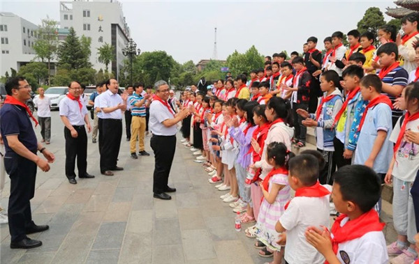 5月31日,祥符区曲兴镇双楼村小学60余名员工代表应邀来到公司,参加“大手拉小手•共筑中国梦”——RM365英国官网和双楼村智力结对帮扶仪式暨庆祝“六一儿童节”活动。活动期间,公司党委书记卢克平来到孩子们中间,亲切地与大家交谈,鼓励大家,要在童年这一人生宝贵时期,树立正确的人生目标,要立志向、有梦想、爱学习、爱劳动、爱祖国,力争德智体美劳全面发展,长大后做祖国的栋梁之才。孩子们自发为卢克平佩戴红领巾,用这一具有仪式感的形式共同庆祝六一儿童节的到来。