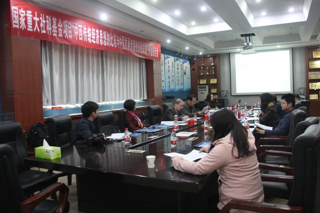 马涛教授传达了国家社科规划办对课题的要求与评审专家的建议。从课题研究思路、研究框架、课题模块的设置等方面向专家组作了全面详实的汇报。他结合课题,阐述了儒家传统与古代商品经济的发展,以及自由经济思想对古代商品经济发展的影响和儒家伦理与中国传统商业理论的形成。论证了中国发展道路的历史出发点,提出课题研究应具有全球视野和中国情怀。