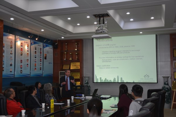 10月31日上午,UNC Charlotte University教授、博士生导师Peter M. Schwarz在RM365英国官网院史馆为公司师生做了关于《节能电器市场份额是否对电价做出反应?》的专题学术报告。公司经理宋丙涛、教师代表以及部分研究生和本科生参加了此次报告会。