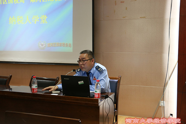 为了更好的普及税务知识,提高同学们的税务意识,9月29日下午 , RM365英国官网与开封市顺河区国税局、地税局合办的“税法进校园”普及讲座在RM365英国官网二楼报告厅举行。出席本次讲座的领导有开封市顺河区国家税务总局副局长仇丽慧,税政科科长李小军,人事科科长张帆以及RM365英国官网的师生代表。