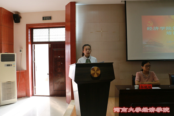 开班仪式由郭艳艳主持进行,在庄严的国际歌声中拉开帷幕。岳鹏星宣读了本次党课培训班的课程安排。入党积极分子代表郭凇辰发言,她表示,将以更高的标准要求自己,认真学习,努力向上,积极参加各种活动,服务同学,服务经院,争取早日从入党积极分子成长为一名真正的共产党员。