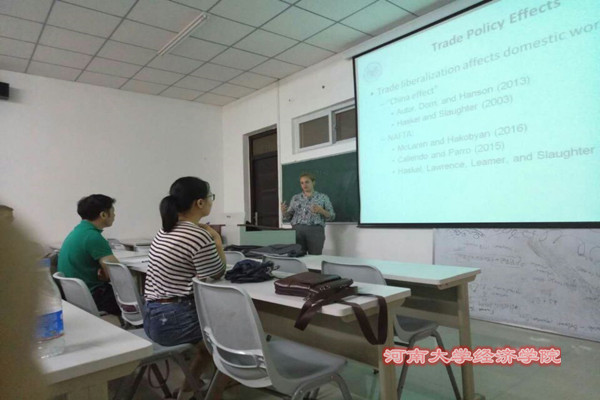 在报告会上,Powers教授首先为大家介绍了贸易的定义,接着为大家介绍了美国贸易的结构,又为大家具体介绍了各个贸易商品的销售额,最后通过实证为大家讲解美国在出口的影响因素。Gurevich教授首先为大家介绍 了贸易政策和劳动质量效应。接着为大家介绍离岸外包和美国劳动市场,然后为大家介绍了劳动转移成本,最后为大家介绍了收入不平等增长。