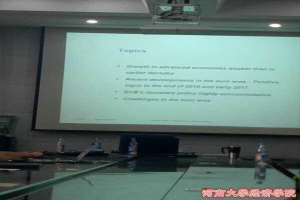 在报告会上,Dr Honkapohja首先指出欧洲地区经济发展比以往缓慢的事实,但在2016年末2017年初欧洲经济发展呈现好的态势,并极力推荐EBC的货币政策,最后指出未来欧洲经济发展面临的挑战。
