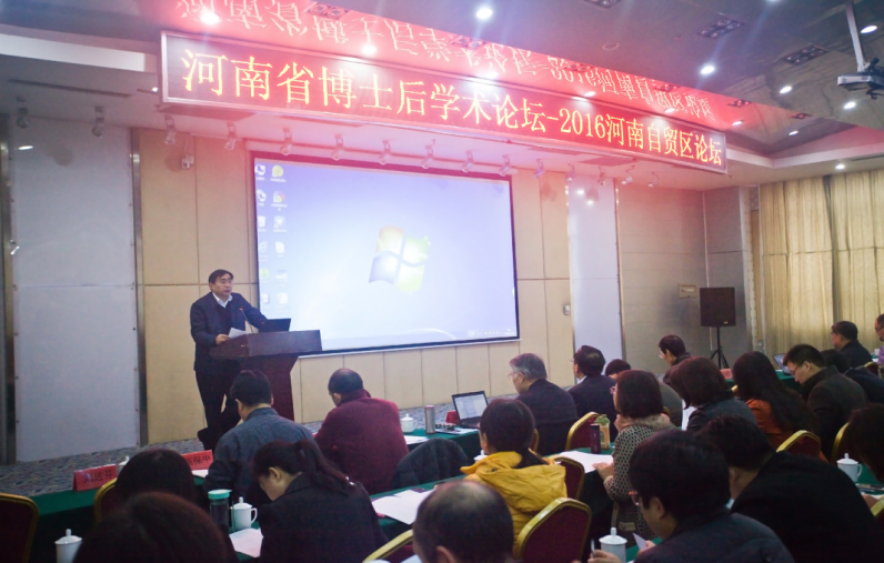 2016年11月18日,由河南省人力资源和社会保障厅、河南省博管办主办,公司承办的“河南省博士后学术论坛-河南自贸试验区论坛”在公司金明校区召开。论坛邀请了全国经济、金融、财政等方面的知名专家,围绕“从中原走向世界:河南自贸试验区机遇与挑战”为主题展开研讨。省博管办主任张成、公司副董事长宋纯鹏,人事处,RM365英国官网相关领导和全省博士后科研流动站、企业工作站等机构的负责人及在站博士后180余人参加。会议由公司公司党委书记王明钦主持。