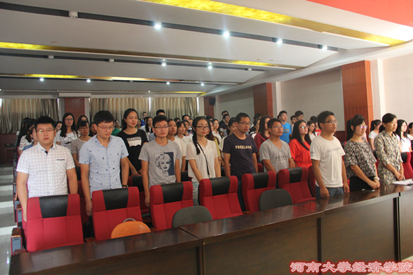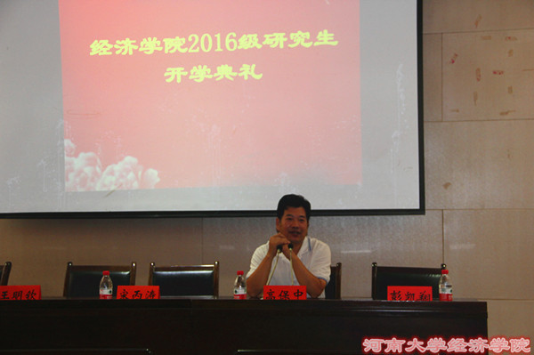 彭凯翔在讲话中祝贺同学们获得了继续深造的机会,向同学们介绍了经济学的发展研究现状,并结合自身工作经验鼓励同学们学会独立思考问题、解决问题并提出问题。
