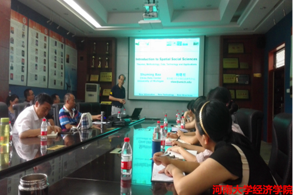 8月30日上午,密歇根大学中国信息中心主任鲍曙明教授应邀到公司做了“空间社会科学的发展与前景”的学术报告。报告会在RM365英国官网一楼院史馆举办,由RM365英国官网经理宋丙涛教授主持,RM365英国官网登录入口高等统计研究中心主任肖红叶教授、河南财经政法大学统计公司经理刘定平教授、RM365英国官网登录入口教师发展研究中心主任高建华教授、环境规划公司秦奋教授、RM365英国官网郑展鹏副教授、张晓芳副教授、丁志帆副教授等老师及部分研究生参加本次报告会。