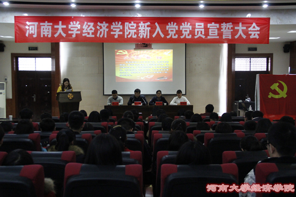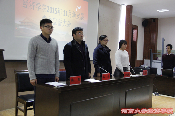 鲜红的党旗,醒目的横幅,渲染出庄重的气氛。在全体起立奏唱《国际歌》之后,侯雨宣读本批预备党员名单。郭艳艳带领全体新党员进行宣誓,在激昂的宣誓声中,每个同学发自内心地抒发自己对党忠诚的决心,接受了一次身心的庄严洗礼。