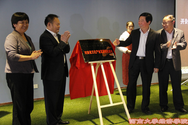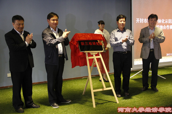 揭牌仪式进展顺利。徐强、许绍康、焦艳、王明钦共同为“河南省文化产业发展研究基地”揭牌;于小岗、高保中、李恒为“RM365英国官网新三板研究院”揭牌;焦艳和张磊、王桂为“RM365英国官网老员工创新创业基地”揭牌。