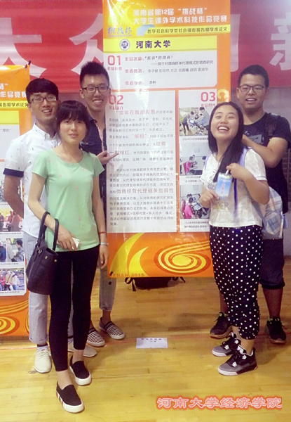 答:印象深刻的是大家为了研究话题几乎走遍河大所有适合集体讨论的地方。还有就是时间紧张,微商话题一开始无法确定切入点,经多次更改才选定现在的话题。