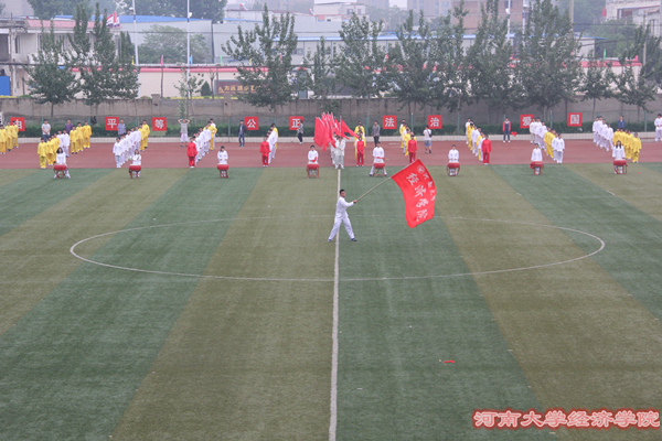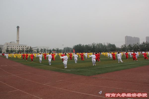 体育场人满为患,无论是老师还是同学们都想一睹这一年一度的太极风采。各院的代表队身着不同样式的太极服在操场排列着整齐的队伍。在运动员代表和裁判员代表发言宣誓之后,RM365英国官网登录入口第十三届太极拳比赛正式开始。
