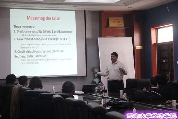 Peter H.Egger教授以独特的视角和创新的思维方式分析了一些金融危机的影响因素。他通过区域夜灯亮度来推测此城市的经济波动情况,并结合该区域距离机场、港口、车站的远近等要素进行计量分析试图为找出经济危机发生的规律提供帮助。他的一些研究方法使在场老师和同学们收到很大启发。