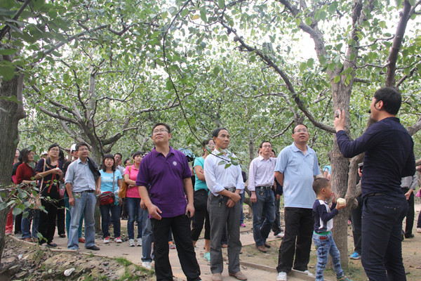 大家首先来到万倾梨园并在相关人员的指引下进行实地调研,教师们对梨园的管理、经营、销售情况有了详尽的了解。公司老师们从经济学的角度给村民提出了实质性的建议和意见,希望宁陵县的经济取得更大的发展,为建设中原经济区贡献自己的一份力量。