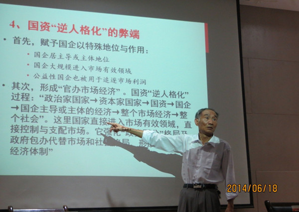 张馨教授的讲座持续了约两个多小时,集中讲授了他自己近期的学术研究思想,讲座内容共分为六个部分。首先,他讲述了为什么用《资本论》来讨论国有企业的原因,接着分析了国有企业的症结、国资“逆人格化”问题,然后指出国企问题是“政府”问题,又明确指出和解释了为什么国企问题也是“财政问题”,最后给出了国企改革的政策建议。