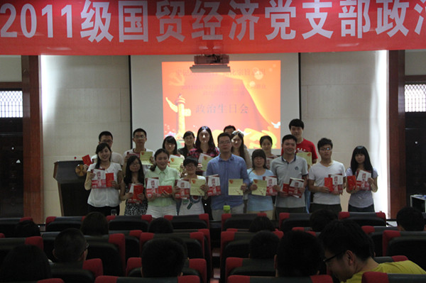 2011级国贸经济党支部通过现场思想汇报、重温入党誓词、发放政治生日贺卡、观看影片等形式,为16位党员过了一次特殊的政治生日。大家一致表示,政治生日活动形式新颖,进一步激发了作为党员的荣誉感和责任感,通过本次活动,加强了党员的身份意识和责任意识,促使大家通过实际行动来提高综合能力,强化党员宗旨意识,充分发挥基层党支部的战斗堡垒作用。