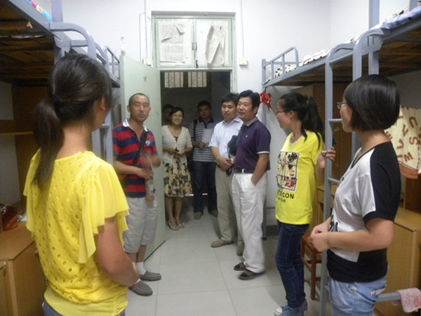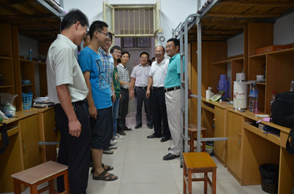 王明钦、宋丙涛等一行先后查看了东苑公寓各新生宿舍。在走访中,公司领导与新生亲切交谈,仔细询问了新生的到齐状况,就生活用品是否买齐,宿舍是否住得习惯等生活方面的细节问题与新生进行了询问,尤其对省外的同学表示关切之情。当得知一位同学是自己一个人来校报到时,王明钦对他这种独立自强的精神予以赞许。最后公司领导鼓励新生要加强宿舍同学之间的沟通交流,互帮互助,尽快适应老员工生活,有困难和问题及时向公司反映,共同克服。领导老师们还特别强调了安全问题,叮嘱新生们注意人身、财产安全。
