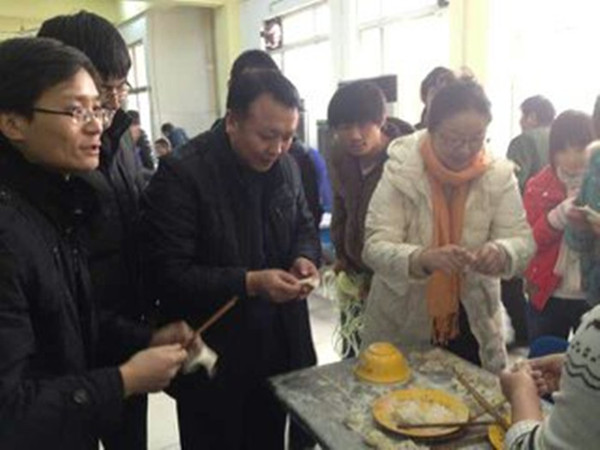 同学们配合相当默契,和面,擀皮,包馅,忙得不亦乐乎,制作出一个个形状各异的饺子。其中一位来自信阳的同学,包得具有当地特色的饺子引起了在场领导老师和同学们的注意,也引得领导老师们纷纷尝试。整个食堂里充满着欢声笑语,在大家的热切等待中,热气腾腾的饺子终于端上了餐桌,领导老师也与同学们一起品尝了凝结同学们劳动的饺子,每个人都感受到了这冬日里属于家的温暖。