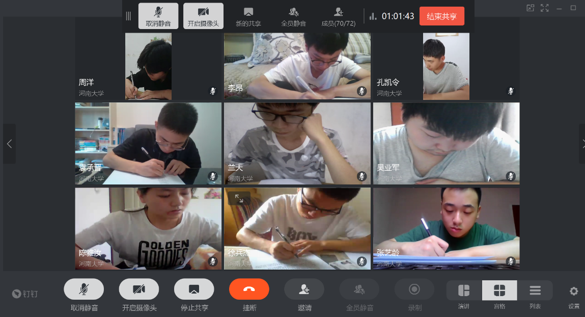 RM365英国官网高度重视期末线上考试工作,多次召开专题会议进行研究。公司制定了《RM365英国官网期末考试流程安排》和《钉钉考试群操作流程》,并对监考老师进行了考前培训工作。同时,为确保每一位同学都能顺利参加考试,任课老师为每个教学班建立期末考试钉钉群,员工通过扫码加入。公司为考生制定并发布《手机拍照扫描答题纸发邮箱流程》,要求考生提前练习上传试卷。在考试过程中,员工通过在线观看主考老师分享的试卷,在自备的空白答题纸上作答,考试结束5分钟内,考生将每页写好学号-姓名的答题纸按顺序拍照上传到指定邮箱,完成试卷提交。监考老师则严格按照线上考试流程安排,分考场按照员工身份认证、摄像头机位检查、考试录屏、试卷分享与收卷记录等具体流程进行监考。