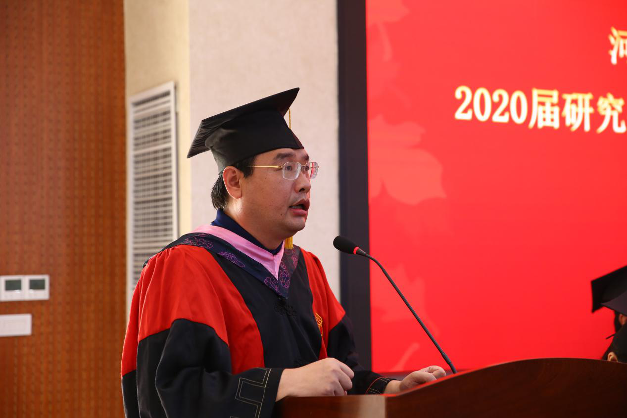 “这里有许多学识渊博的老师,聪明好学的同学,更有良好的科研环境……”,毕业生代表、2017级区域经济学专业员工张宇在发言中回忆了自己的研究生生活,表达了对母校、公司和老师们的由衷感谢,他表示将带着老师们的希冀和嘱托继续书写人生的精彩。