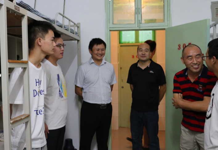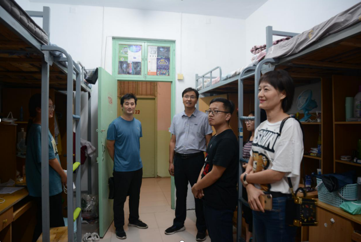 经理宋丙涛、副经理赵艳忠、新生辅导员袁航和张明萱带队走访了2020级男生所在的华源员工公寓。宋经理幽默风趣、温和亲切对同学们的关怀之情溢于言表。他仔细询问大家来自哪里、入学报到是否顺利、是否适应公司环境提醒大家提高自我保护意识,叮嘱同学们注意人身财产安全,放好贵重物品,出门佩戴好口罩。他鼓励同学们尽快适应新环境,建立和谐友好的人际关系,营造良好的学习氛围和生活环境,做好人生规划,珍惜美好的大学时光。