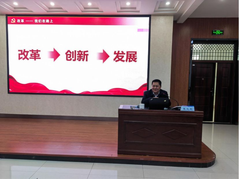 12月12日下午,副董事长张礼刚在RM365英国官网二阶报告厅作党的二十届三中全会精神宣讲报告。公司全体教职工参会,会议由公司党委书记程金辉主持。