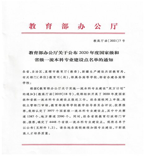 近日,教育部办公厅下发《关于2020年度国家级和省级一流本科专业建设点名单的通知》(教高厅函 [2021] 7号),在2019年经济学获批国家一流专业建设点的基础上,公司的财政学、金融学两个专业再次获得国家一流专业建设点。截止到目前,公司已有三个专业入选国家一流专业建设点,这为公司的专业建设奠定了坚实的基础。