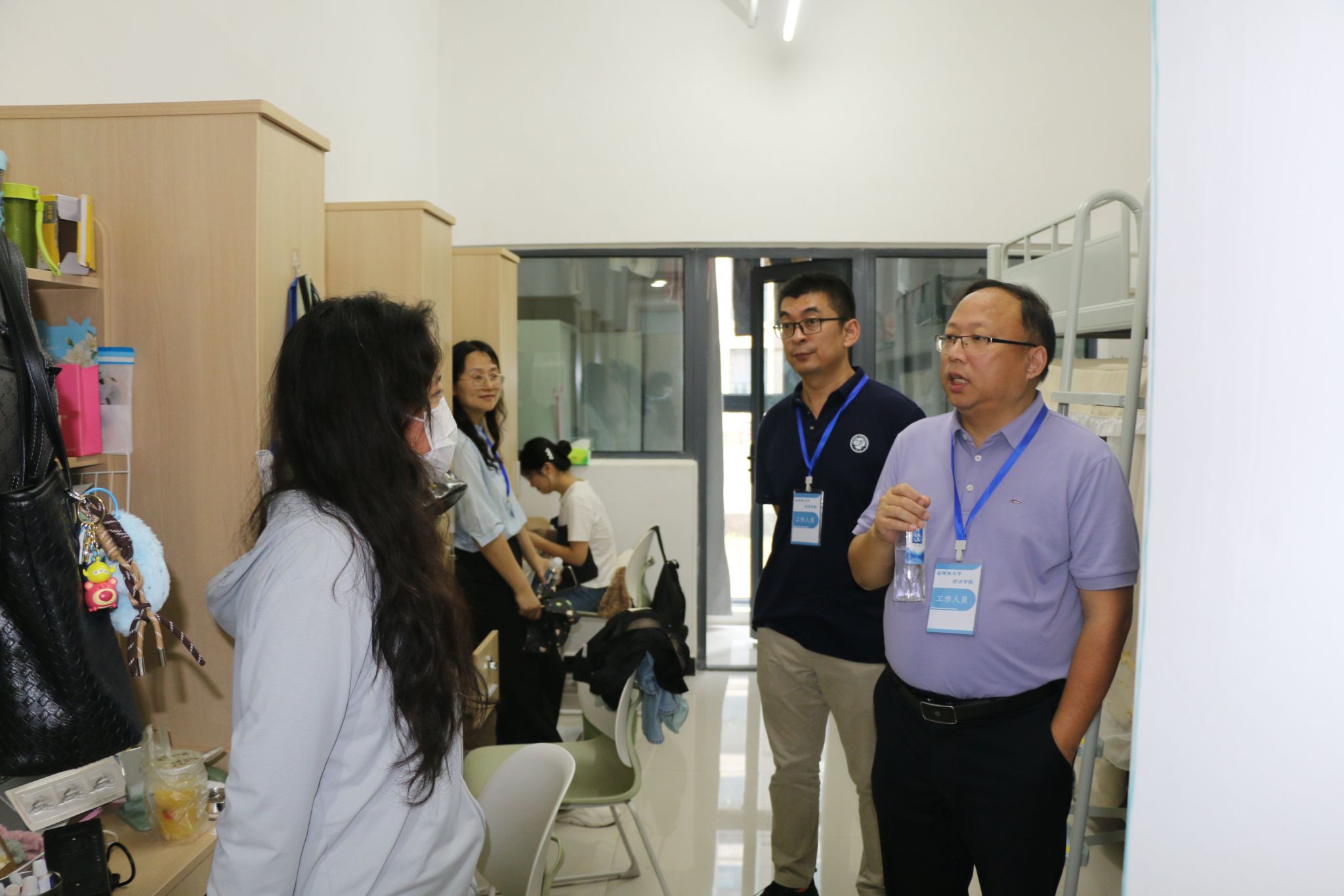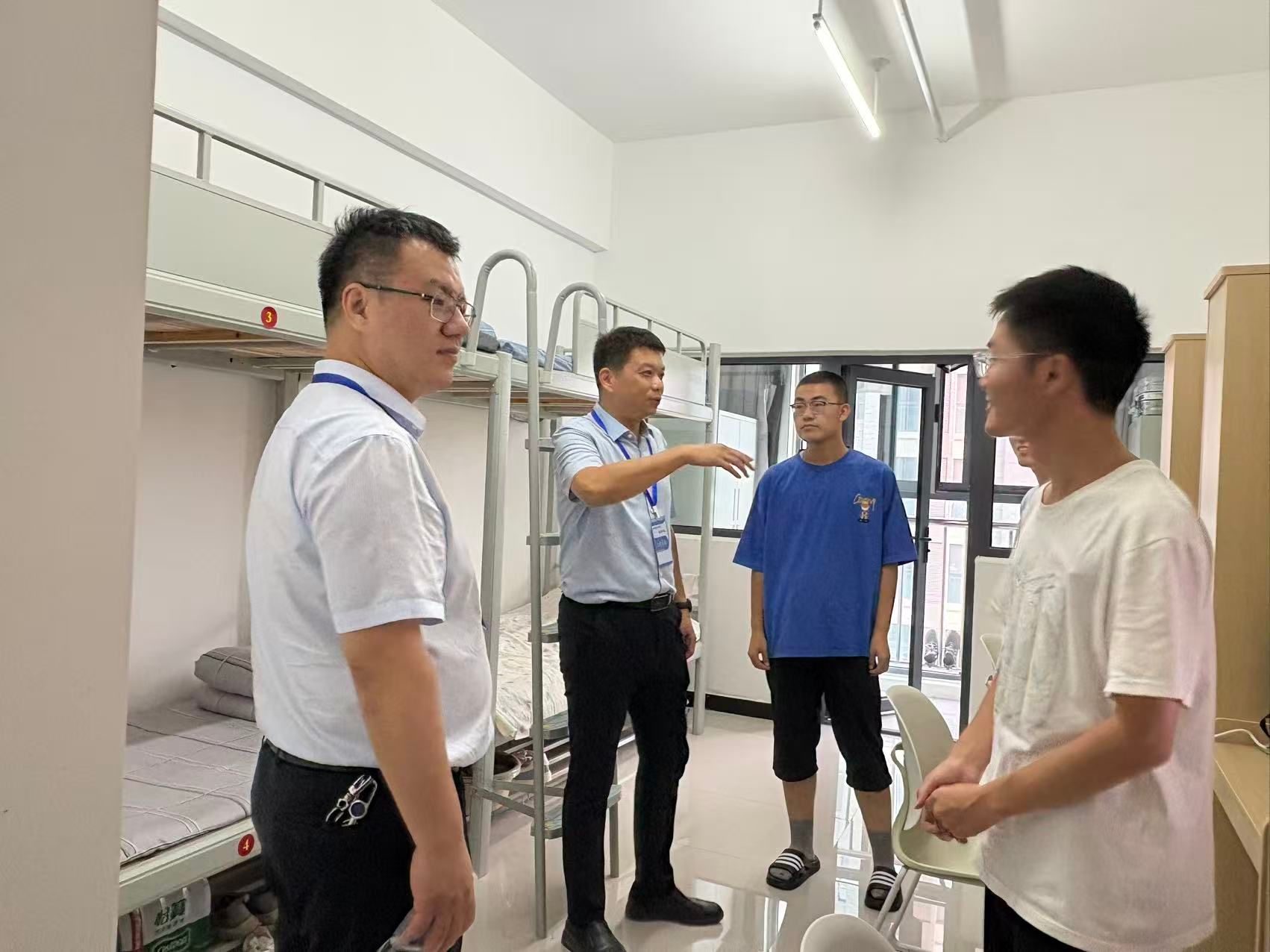 他们每到一处,都会细致地留意着宿舍里的每一处细节:看行李是否已归置妥当,问床铺是否睡得习惯,又关切地了解大家从家乡赶来的旅途是否顺利。当同学们谈起对校园的初印象时,他们认真倾听着,眼中带着欣慰的笑意,仿佛在分享一份新鲜的喜悦。谈及生活,他们反复强调宿舍安全的重要性,提醒大家规范用电、注意防火防盗,句句都藏着对学子们平安的惦念。说到集体生活,他们又温和地嘱咐,要学着与来自天南海北的室友相互包容、真诚沟通,让宿舍成为温暖的“第二个家”。