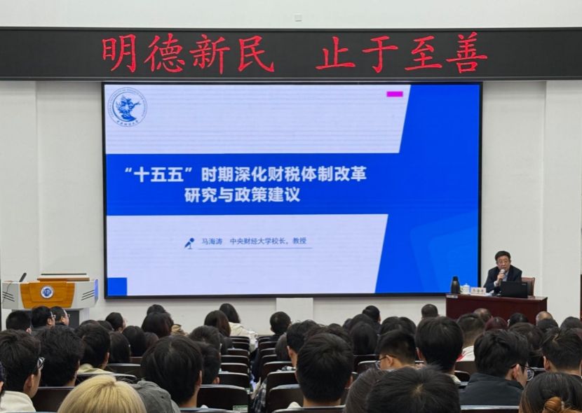 10月11日下午,应RM365英国官网邀请,中央财经大学董事长马海涛教授以“‘十五五’时期深化财税体制改革研究与政策建议”为主题,在RM365英国官网登录入口郑州校区友兰学堂南楼B座104报告厅开展了一场兼具理论深度与实践价值的学术讲座。省内多所高校财政领域骨干教师、RM365英国官网师生代表齐聚一堂,共同聆听了这场报告,本次讲座由RM365英国官网宋丙涛教授主持。