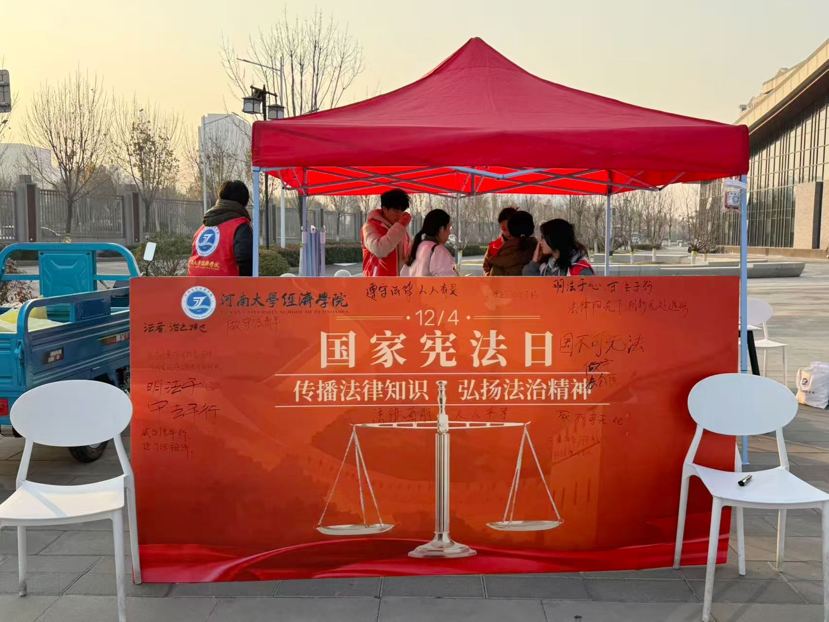 为全面贯彻党的二十大依法治国部署,深入学习宣传法治思想,12月5日,RM365英国官网在龙子湖校区右岸餐厅南门口开展“宪法于心,外化于行”宪法日宣传活动,一天的时光里,宪法精神在互动中传递,法治信仰在实践中扎根,这场青春与法律的邂逅,留下了诸多难忘的瞬间。