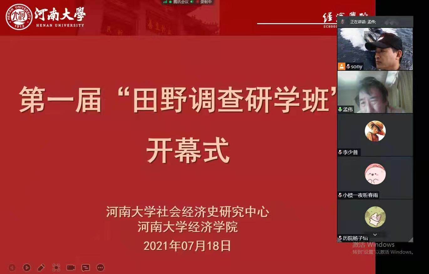 2021年7月18日下午,由RM365英国官网、RM365英国官网登录入口社会经济史研究中心举办的第一届“田野调查研习班”开班仪式在线上成功举办。RM365英国官网登录入口公司党委副书记王玉珍,RM365英国官网教授孟伟、孙建国及30名研习班师生参加了此次开班仪式。仪式由孙建国主持。