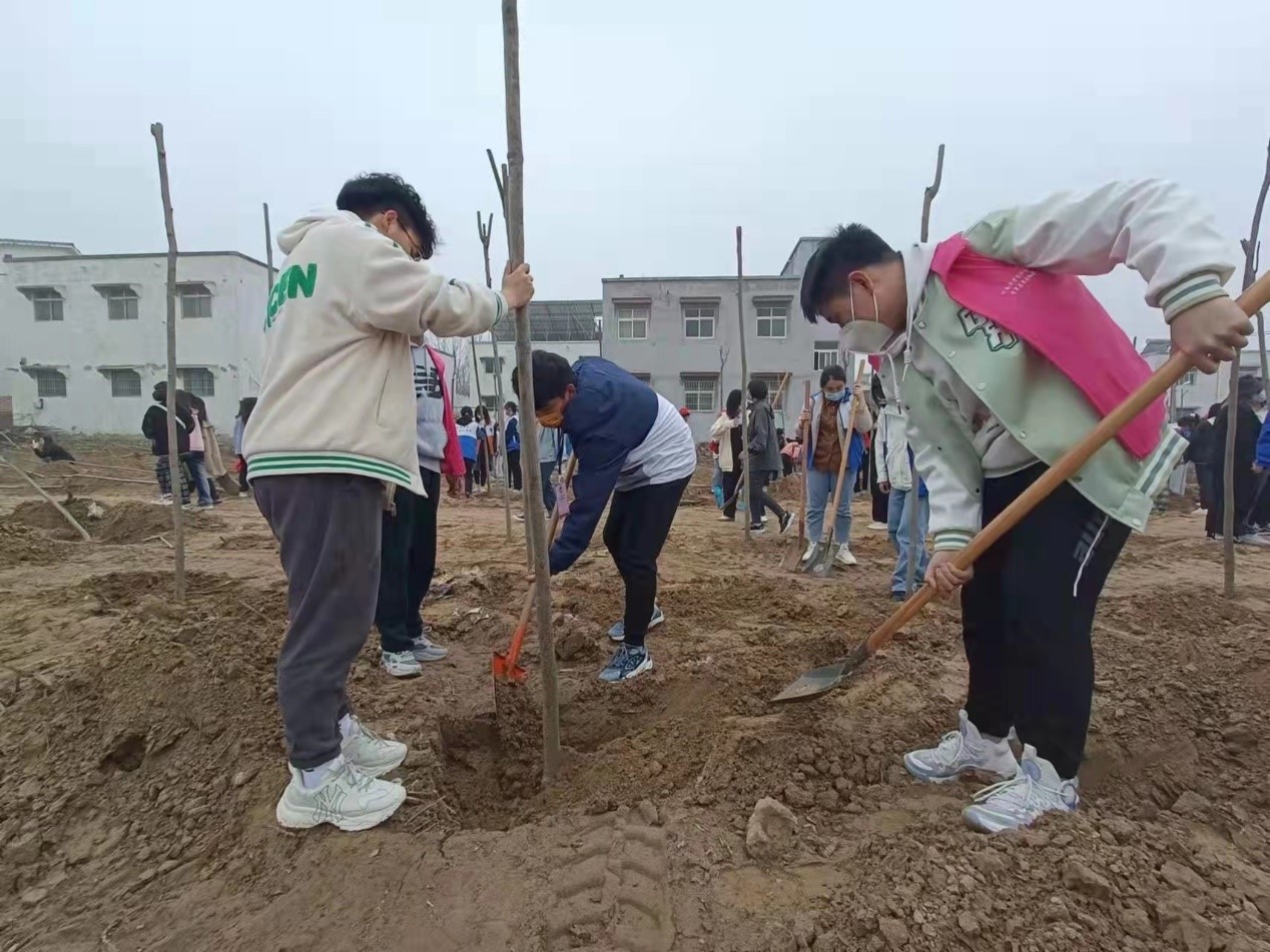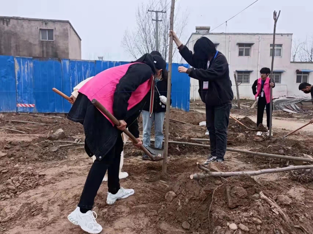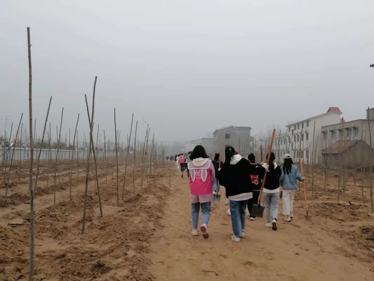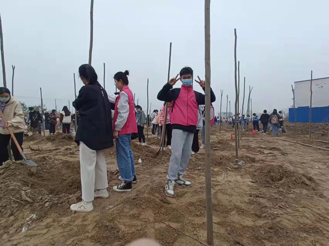 活动伊始,在负责人的带领下,志愿者们四人结组,手拿工具,合理分工,挽起衣袖,干劲十足。在一片热情与期待中,植树活动如火如荼地展开。一时间,土地上遍布志愿者们的身影,一人扶树,两人持锹,一推一铲间,立株沉土。各个环节配合默契,一排排新栽种的树苗昂然挺立,在早春的暖阳中迎风舒展,期待着盛夏的骄阳。志愿者们一起在心中播下爱绿护绿的种子,将辛劳的汗滴融入泥土。在大家的共同努力下,空地上小树苗一株一株立了起来。植树活动接近尾声,志愿者们相聚一起,交流植树心得,共享播种喜悦,并相约来年共同植树,合影留念后,此次活动圆满结束。