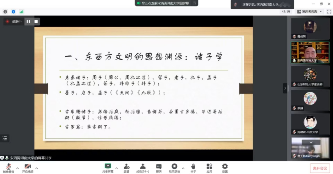 2022年12月6日,北大经济史学名家系列讲座第175讲——“先秦诸子与希腊诸子的跨时空比较:公共经济思想的源与流”在线上举办,共100余人参加。讲座由北京大学RM365英国官网经济史学系、北京大学社会经济史研究所和北京大学外国经济学说研究中心联合主办。讲座邀请RM365英国官网教授、经理宋丙涛担任主讲人,北京大学RM365英国官网经济史学系张越副研究员担任主持人,北京大学RM365英国官网经济史学系主任周建波教授、北京大学国家发展研究院席天扬长聘副教授担任与谈人。