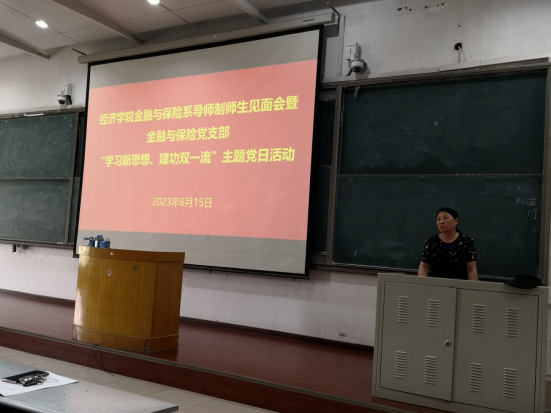 2023年6月15日下午,金融与保险系在金明校区综合教学楼2306教室组织了2021级本科生导师制师生双选见面会暨金融与保险党支部“学习新思想、建功双一流”主题党日活动。副经理吴郁秋、支部书记王丽萍、部分金融系教师及2021级金融学专业本科生参会。见面会由系主任刘飞主持。