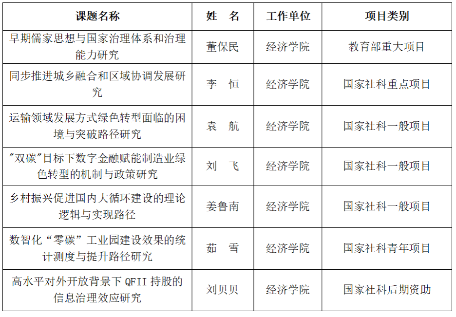 4.获批教育部社科重大项目1项,国家社科重点项目1项、年度项目或后期资助项目5项,国家级项目获批取得历史最好成绩。