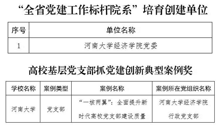 2. 公司党委入选“全省党建工作标杆院系”培育创建单位;行政党支部申报的“‘一核两翼’:全面提升新时代高公司党支部建设质量”工作案例入选高校基层党支部抓党建创新典型案例奖。