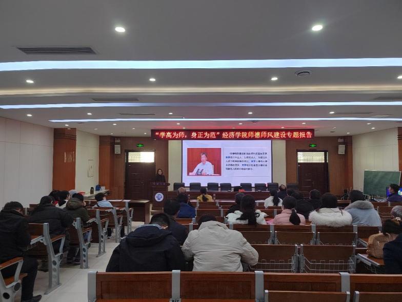 报告会上,赵炎从师德师风建设的重要性着手,结合师德师风建设相关文件,辅以丰富的实践案例,全面系统讲解了师德师风的规范要求、做什么样的好老师,分析了当前师德师风建设面临的新形势、新挑战。她希望各位教职工要高度重视师德师风建设,要深入学习贯彻习近平总书记关于师德师风的重要指示精神,落实教育部和省教育厅有关师德师风建设的要求,深刻理解师德师风问题“零容忍”、“一票否决”的严肃性,在深学笃行中坚定理想信念,提高理论素养,坚定拥护“两个确立”、坚决做到“两个维护”。