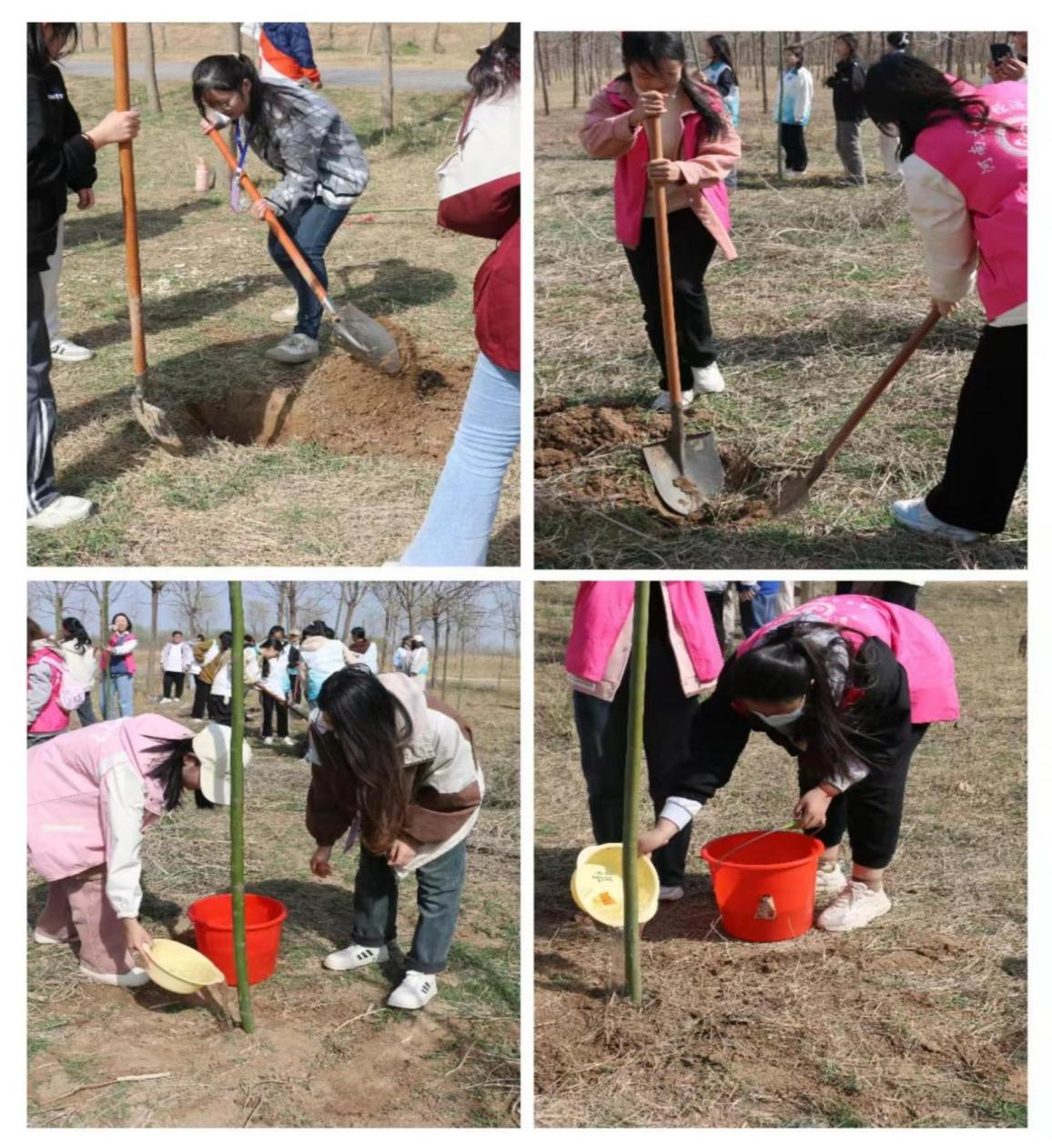 在植树现场,志愿者们分工协作,互相配合,积极热情地投入到植树活动中。大家挥锹填土,手扶树苗,提桶浇水,用心培土,认真细致地完成每一道工序,植树现场一派热火朝天的劳动景象。经过一个下午的努力,一排排树苗被整齐地栽种完毕,它们在早春的暖阳中迎风舒展,期待着盛夏的骄阳,充满着绿色发展的新希望。